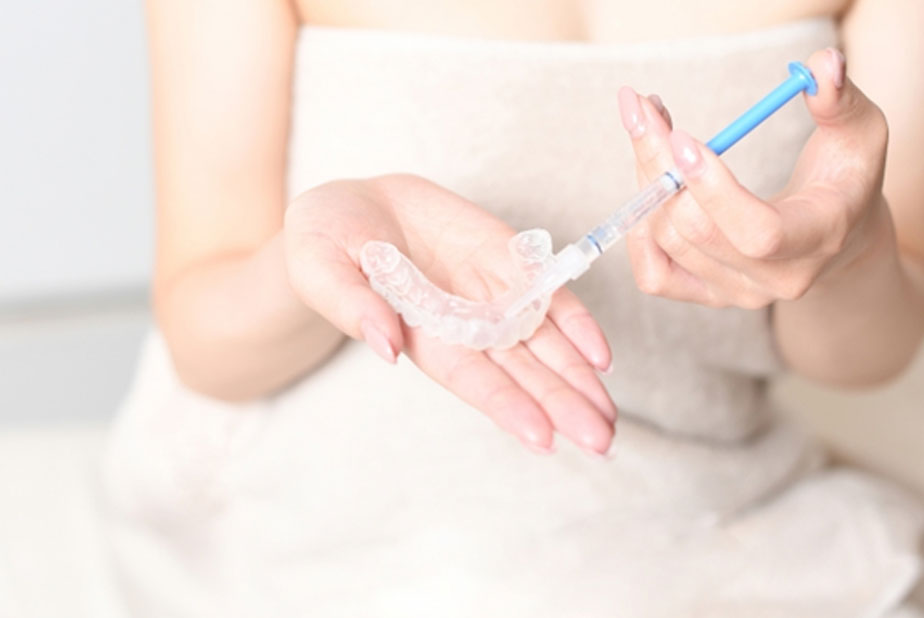 特殊な光を照射し、薬剤を洗い流す工程を数回繰り返します。【ホームホワイトニングの場合】