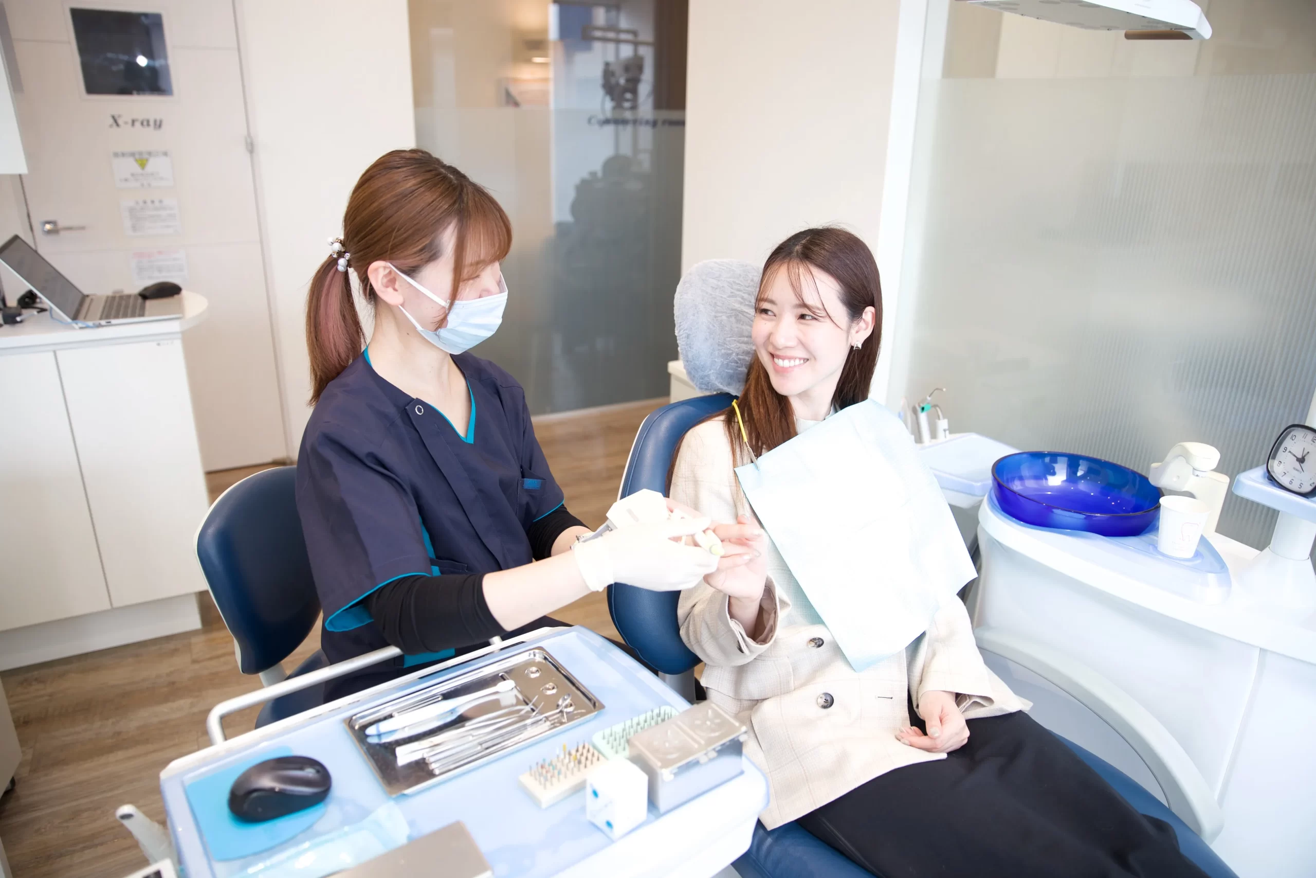 患者様のご希望を伺いながら、現在の歯の色を確認し、目指す白さや治療方法についてご相談します。